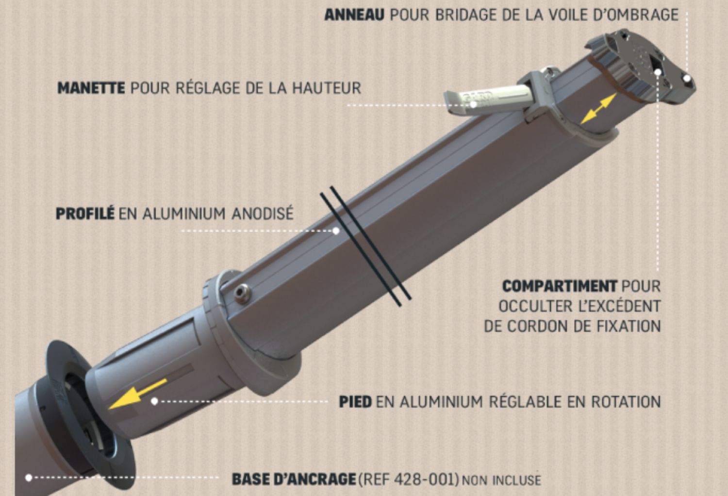 - Système d’indexation innovant : ajustez facilement l’orientation du poteau pour un ombrage optimal, quelle que soit la configuration de votre espace.