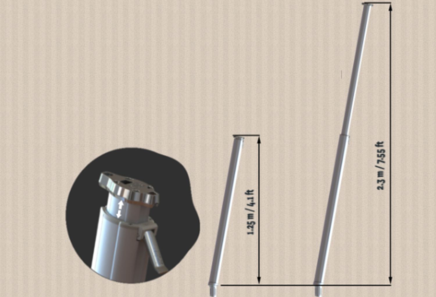Ajustez votre ombrage en un clin d'œil avec des mâts télescopiques jusqu'à 2,3 mètres